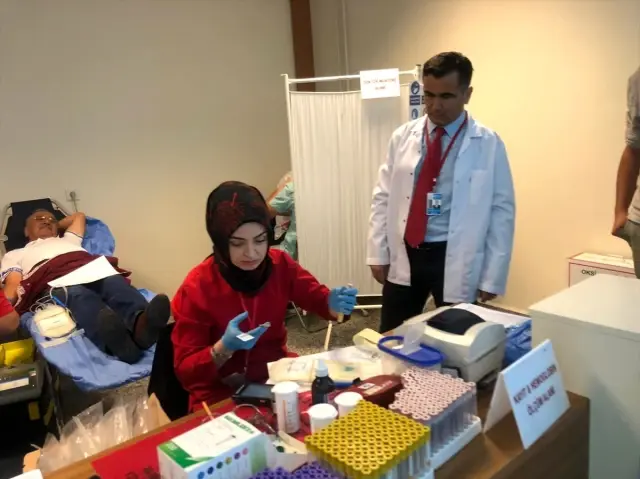 Kızılay’ın kan alma biriminin hastane binası içinde kurduğu standa gelen vatandaşlar ve hastane personeli, gerekli muayeneleri yapıldıktan sonra kan ve kök hücre bağışında bulundu.