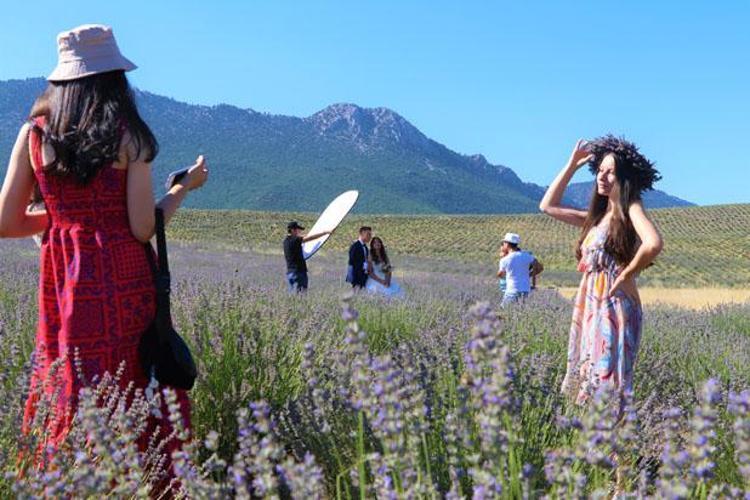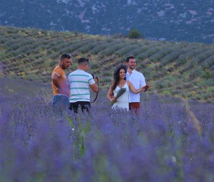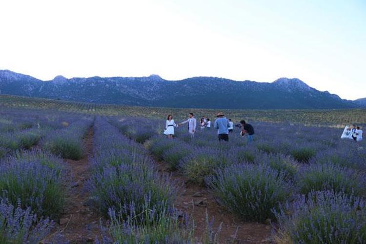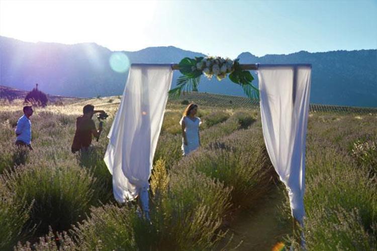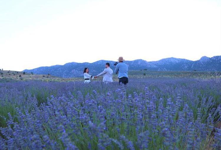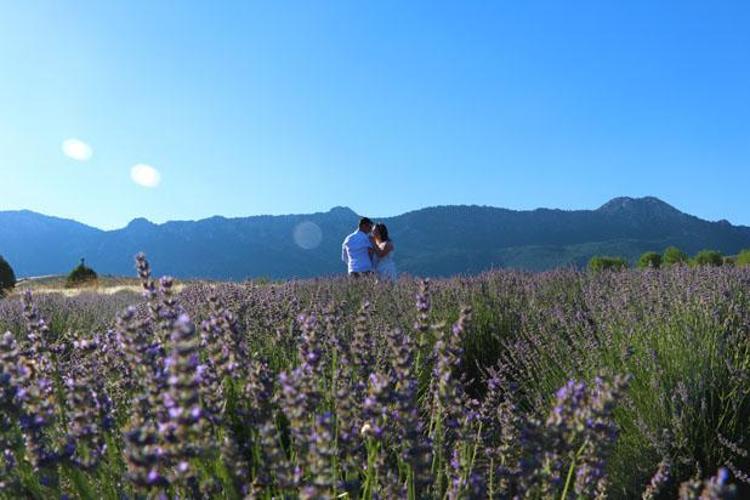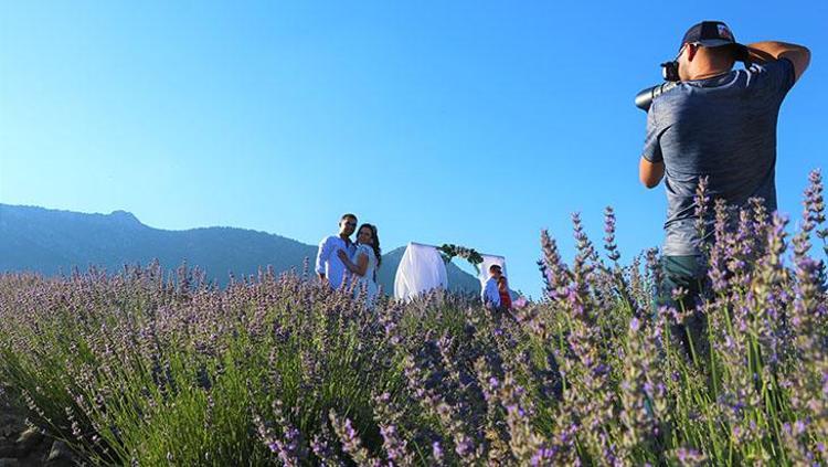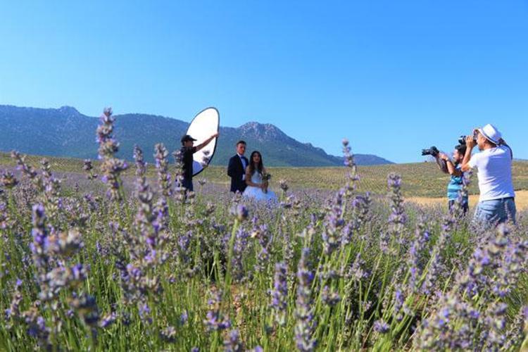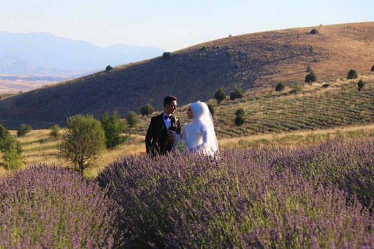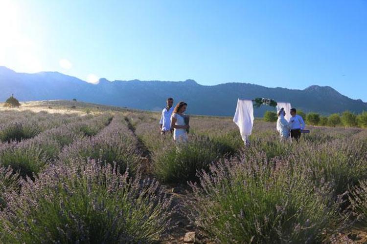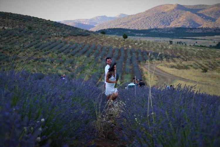 Burada, evlilik anılarına unutulmaz fotoğraf kareleri ekleyen çiftler, lavantanın insanı dinlendiren kokusunu soluyup, huzur veren görselliğini seyretme imkanı da buluyor.