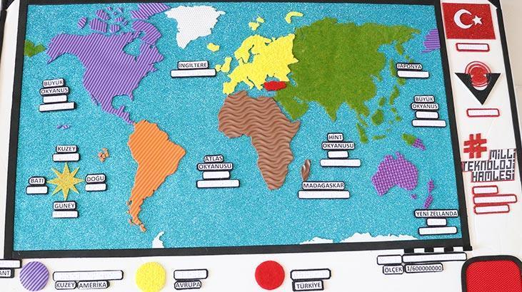 Öğrencilerden Büşra Taşkın da daha önce yaptıkları basit bir dokunsal eğitim materyaline bir yazılım kodlayarak sesli anlatım özelliği eklediklerini ve bu sayede birinci olduklarını belirterek, “Bu kodlama sayesinde dokunsal harita üzerindeki butonlara basıldığında, Türkçe, İngilizce, Fransızca ve Japonca dillerinde anlatımlar yapılabiliyor.” diye konuştu.