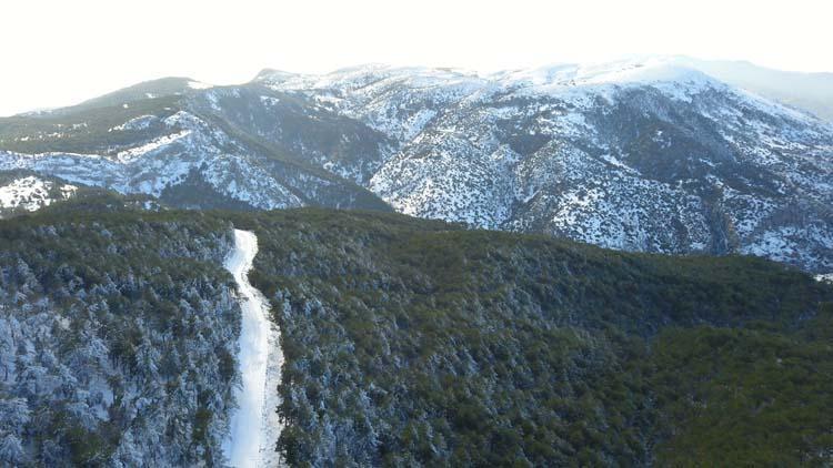 Yamaçları kaplayan beyaz örtü, drone ile havadan görüntülendi.