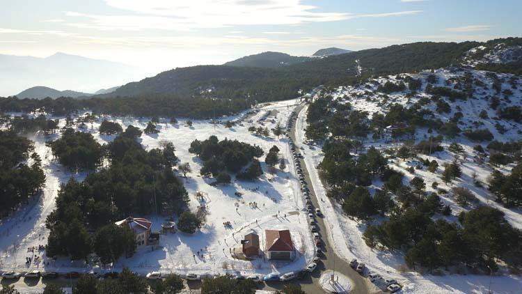 Ege’de, 1513 metre rakımıyla Manisa ve İzmir arasında yer alan Spil Dağı, yaklaşık bir haftadır etkili olan kar yağışıyla beyaza büründü.