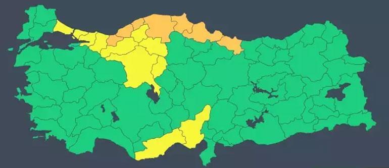 Meteoroloji, “Adana, Ankara, Bolu, Çankırı, Mersin, İstanbul, Kocaeli, Sakarya, Kırıkkale, Karabük” sarı “Kastamonu, Ordu, Samsun, Zonguldak, Bartın, Düzce, Sinop” için turcunu uyarıda bulundu.