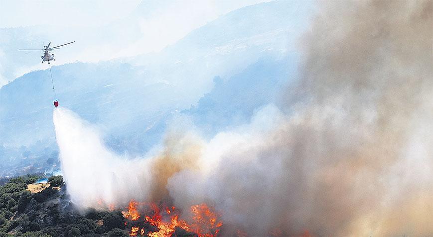 Muğla’nın Bodrum ve İzmir’in Çeşme ilçeleri de dün alevlere teslim oldu. Bodrum ilçesi İslamhaneleri mahallesindeki makilikte dün henüz belirlenemeyen nedenle çıkan yangın rüzgarın etkisiyle büyüdrü. Yangına hava destekli müdahale sürüyor. Çeşme ilçesi Alaçatı mahallesinde tarım arazisinde de dün sabaha karşı çıkan yangın ise 7 saatlik müdahaleyle söndürüldü. ● DHA
