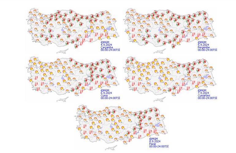 Meteoroloji Genel Müdürlüğü tarafından yapılan son tahminlere göre: Ülkenin kuzey, iç ve batı kesimlerinin parçalı yer yer çok bulutlu, Batı Akdeniz’in iç kesimleri, Doğu Akdeniz, İç Anadolu’nun kuzeydoğusu, Karadeniz, Sakarya, Bilecik, Denizli, Afyonkarahisar, Konya ve Niğde çevreleri ile Ankara’nın kuzey ve doğu kesimlerinin yerel olmak üzere sağanak ve gök gürültülü sağanak yağışlı, diğer yerlerin az bulutlu ve açık geçeceği tahmin ediliyor. Yağışların, Doğu Karadeniz kıyıları ile Ordu çevrelerinde yer yer kuvvetli olması bekleniyor.