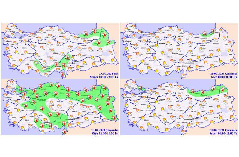 “İstanbul’da çarşamba günü ve cuma günü il genelinde, perşembe günü de doğusunda yağış bekliyoruz. Hava sıcaklığı da 25-26 dereceler civarında olacak. Ankara’da da çarşamba günü gök gürültülü sağanak yağış bekliyoruz. Perşembe ve cuma yağış beklentimiz yok. Hava sıcaklığı da yine 26-27 derece civarında olacak. İzmir’de yağış beklemiyoruz, parçalı bulutlu bir hava var. Hava sıcaklığı da 29-30 derece civarında olacak”