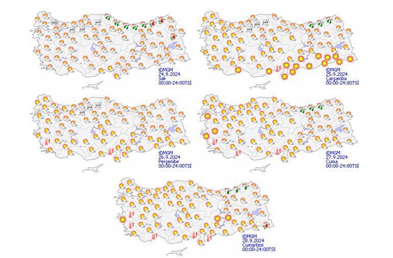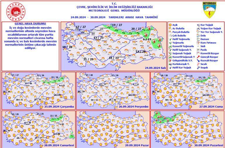 İstanbul 24 hafta içi 27, Ankara 18 hafta içi 26, İzmir 29 hafta içi 32, Antalya 30 hafta sonu 35 derece”