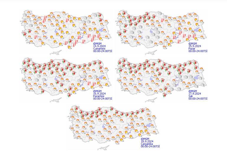 Meteoroloji Genel Müdürlüğü tarafından yapılan son tahminlere göre: Ülkemizin batı ve kuzeydoğu kesimlerinin parçalı yer yer çok bulutlu, Trakya’nın batısı, Doğu Karadeniz’in iç ve yüksek kesimleri, Doğu Anadolu’nun kuzeydoğusu, İzmir, Manisa ve Edremit Körfezi ile Osmaniye ve İskenderun Körfezi çevrelerinin yerel sağanak ve gök gürültülü sağanak yağışlı, diğer yerlerin az bulutlu ve açık geçeceği tahmin ediliyor.