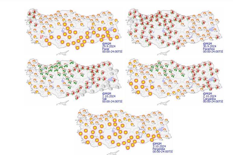 Meteoroloji Genel Müdürlüğü tarafından yapılan son tahminlere göre: Ülkemizin kuzey kesimlerinin parçalı bulutlu, yarın (Pazar) öğle saatlerinden sonra Trakya’nın batı kesimlerinin yer yer çok bulutlu yerel sağanak ve gök gürültülü sağanak yağışlı, diğer yerlerin az bulutlu ve açık geçeceği tahmin ediliyor. Bu gece ve sabah saatlerinde kuzey kesimlerde pus ve yer yer sis hadisesi bekleniyor.