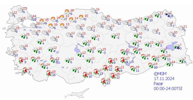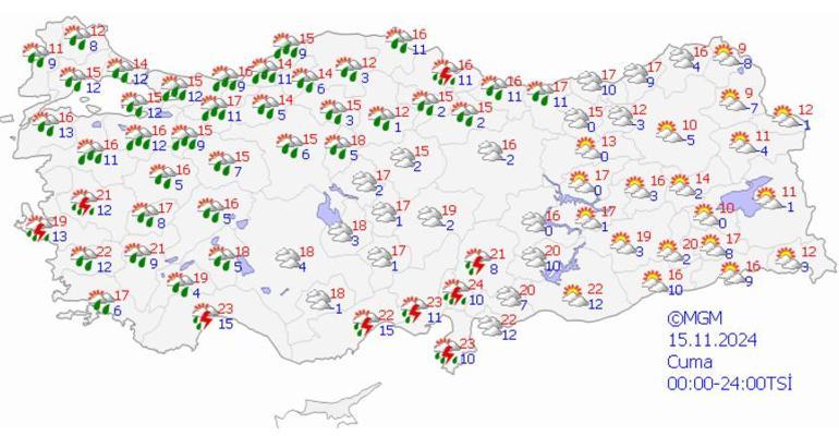 Meteoroloji Genel Müdürlüğü tarafından yapılan son tahminlere göre: Ülkemizin batı kesimlerinin çok bulutlu, Marmara, Ege (Afyonkarahisar hariç), Batı Akdeniz, Batı ve Orta Karadeniz ile Mersin, Adana, Osmaniye, Ankara, Eskişehir, Çankırı ve Giresun çevrelerinin sağanak ve gök gürültülü sağanak yağışlı, diğer yerlerin parçalı ve az bulutlu geçeceği tahmin ediliyor. Yağışların; Balıkesir, Bursa, İzmir ve Manisa çevrelerinde yerel kuvvetli olması bekleniyor.