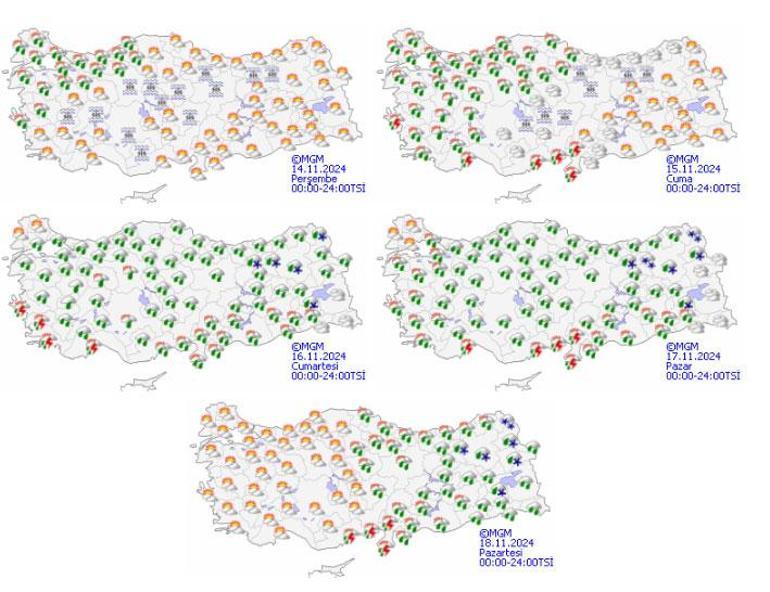 Özdemirci, şu ifadelere yer verdi, “İstanbul’da 3 gün boyunca yağış beklentimiz var. Perşembe günü 11 ila 17 derece sıcaklık bekliyoruz. Cuma günü için 12 ila 15, cumartesi günü için ise 10 ila 12 derece sıcaklık beklentimiz var. İzmir’de önümüzdeki 3 gün boyunca yağış beklentimiz var. Cuma ve cumartesi günü gök gürültülü sağanak yağış görülecek. Perşembe günü 12 ila 22 derece sıcaklık bekliyoruz. Cuma günü için 14 ila 20, cumartesi günü ise 12 ila 18 derece sıcaklık bekliyoruz. Başkent Ankara’da perşembe günü için sıcaklık beklentimiz yok. Parçalı bulutlu sabah saatlerinde sis hadisesi bekliyoruz. 5 ila 16 derece sıcaklık beklentimiz var. Cuma ve cumartesi günü için sağanak yağışlı. Cuma günü 6 ila 16 arası sıcaklık bekliyoruz. Cumartesi günü ise 7 ila 12 derece sıcaklık beklentimiz var.”