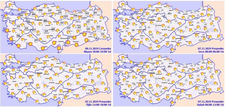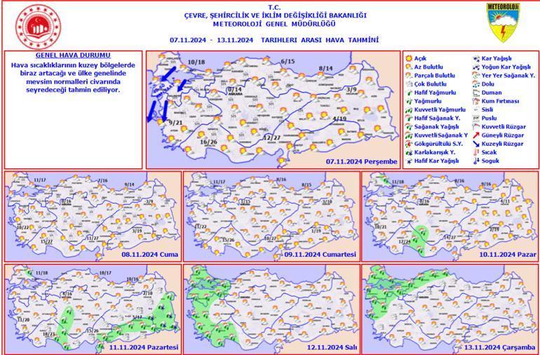 Meteoroloji Genel Müdürlüğü tarafından yapılan son tahminlere göre: Ülkemizin kuzeydoğu kesimlerinin parçalı, yer yer çok bulutlu, diğer yerlerin az bulutlu ve açık geçeceği tahmin ediliyor. Gece ve sabah saatlerinde iç kesimlerde pus, yer yer sis bekleniyor.