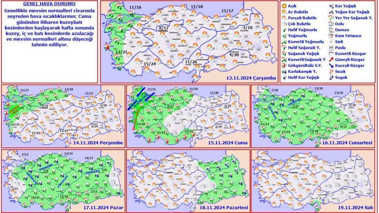 Hafta sonu gelecek soğuk hava sıcaklıkları 7-8 derece düşürecek. Doğu Anadolu’da karla karışık yağmur ve kar yağışı iç bölgelerin yükseklerinde karla karışık yağmur görülecek. Diğer bölgelerde yağmur, Marmara ve Doğu Karadeniz’de kuvvetli. Haftaya sıcaklıklar tekrar yükselecek ve yağış azalacak.