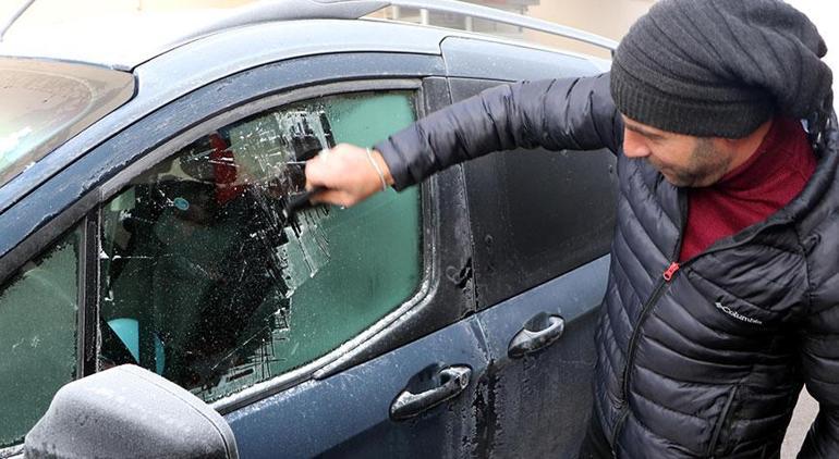 Aracının camlarını temizleyen Seyit Taber, “Erzurum’da kar yok ama soğuklar etkili oluyor. Sabah uyandığımda aracın camları tamamen buz tutmuş. Aracı çalıştırıp kaloriferlerini açtım. Buz tutan camları da kazıdım” diye konuştu.