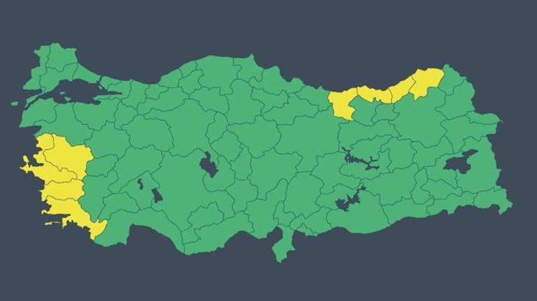 KUVVETLİ YAĞIŞ UYARISI: Ege’nin batı ve Batı Karadeniz kıyılarının doğu kesimleri ile Orta ve Doğu Karadeniz kıyılarında görülecek yağışların yerel kuvvetli olması beklendiğinden yaşanabilecek olumsuzluklara karşı dikkatli ve tedbirli olunması gerekmektedir.