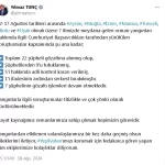 MEHTAP GÖKDEMİR Ankara – Genel Başkan Özgür Özel, Tunceli ve Ovacık belediyelerine kayyum atanması üzerine sosyal medya üzerinden yaptığı açıklamada, “31 Mart seçimlerinde millet, Türkiye’de bir iktidar değişimi sürecini başlatmıştır. Ancak hükümet, seçilmiş belediye başkanlarına kumpaslar kurarak, yargıyı sopa gibi kullanarak milletin iradesine direnmektedir” değerlendirmesinde bulundu. Hangi partide olursa olsun belediyelere yönelik bu uygulamaya topyekün tepki gösterme kararlılığında olduklarını vurgulayan Özel, “30 Kasım’da 414 belediye başkanımızı, kayyım belediyeciliğini ve iktidarın belediyelere yönelik saldırılarını topyekûn göğüslemek üzere Genel Merkezimizde toplantıya çağırdık. Halkın iradesine kafa tutan karşımızdaki bu kötülüğe karşı, sonuna kadar hep birlikte mücadele edecek, gereken tüm adımları hep birlikte atacağız” ifadelerini kullandı.