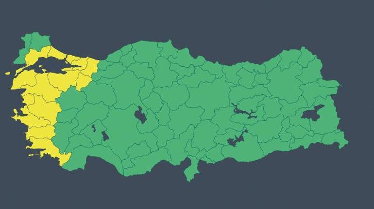 Balıkesir, Bilecik, Bursa, Çanakkale, İstanbul, Kocaeli, Sakarya, Tekirdağ, Yalova için sarı kodlu yağmur uyarısı
