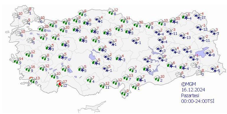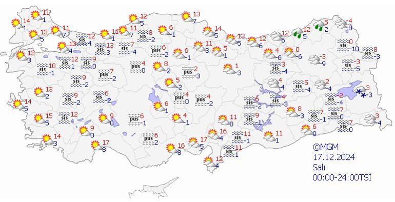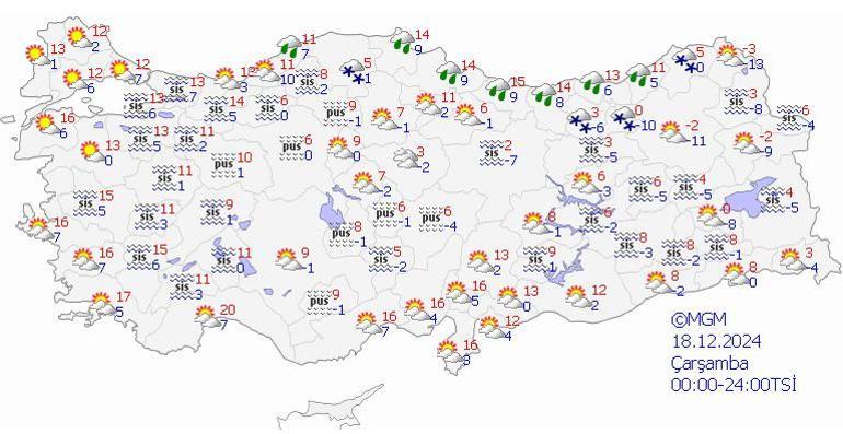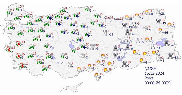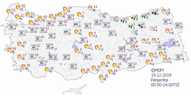 Meteoroloji Genel Müdürlüğü tarafından yapılan son tahminlere göre: Ülkemiz genelinin parçalı ve çok bulutlu, Marmara, Ege, Batı Akdeniz, Batı Karadeniz ile Ankara, Eskişehir, Çankırı, Artvin ve Ardahan çevrelerinin aralıklı yağışlı geçeceği tahmin ediliyor. Marmara’nın güney ve doğusu, Ege kıyıları, Manisa, Kütahya çevreleri ile Düzce’nin batı kesimlerinde yer yer kuvvetli olması beklenen yağışların genellikle yağmur ve sağanak, Artvin ve Ardahan çevrelerinde karla karışık yağmur ve yükseklerinde kar şeklinde olacağı tahmin ediliyor. Doğu Karadeniz’in iç kesimlerinin yüksekleri ile Doğu Anadolu’nun doğusunun dik ve eğimli yamaçlarında çığ tehlikesi bulunmaktadır. Ülkemizin iç ve doğu kesimlerinde buzlanma ve don ile birlikte pus ve yer yer sis bekleniyor.