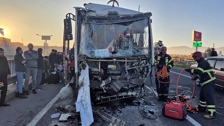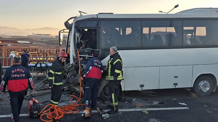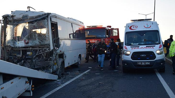 Manisa’da korkunç kaza! İşçi servisi TIR’a çarptı: 22 kişi yaralı