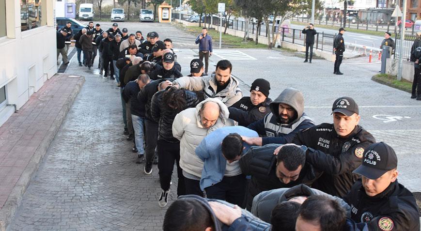 Emniyetteki işlemlerinin ardından sevk edildikleri adliyede mahkemeye çıkarılan şüphelilerden 24’ü tutuklandı, diğerleri ise adli kontrol şartıyla serbest bırakıldı.