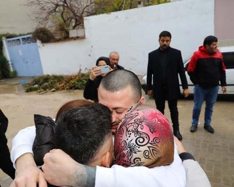 Evlerinin önünde annesi Sultan Arslan, kardeşleri ve akrabaları tarafından karşılanan Engin Arslan, burada ailesi ile sarılarak hasret giderdi.