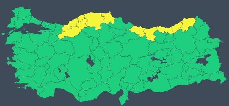 Meteoroloji; Artvin, Giresun, Ordu, Sinop, Zonguldak, Karabük, Bolu, Kastamonu, Rize, Trabzon, Bartın, Düzce illeri sarı kodda uyarıda bulundu.