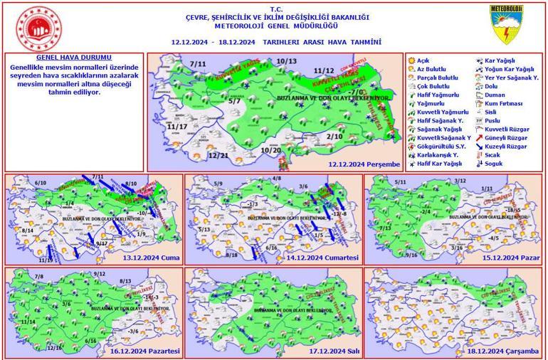 Meteoroloji Genel Müdürlüğü tarafından yapılan son tahminlere göre; Yurdun genelinin parçalı ve çok bulutlu, Marmara’nın doğusu, İç Anadolu, Karadeniz, Doğu Anadolu, Güneydoğu Anadolu’nun doğusu ile Kütahya, Osmaniye, Hatay, Gaziantep ve Kilis çevreleri aralıklı yağışlı geçeceği tahmin ediliyor. Yağışların genellikle yağmur ve sağanak, Batı ve Doğu Karadeniz’in iç kesimleri, Doğu Anadolu’nun kuzey ve doğusu ile Kayseri, Sivas ve Çankırı’nın yüksek kesimlerinde karla karışık yağmur ve kar şeklinde olması bekleniyor. Yağışların, Batı ve Doğu Karadeniz ile Ordu, Hatay, Ağrı, Iğdır, Van ve Hakkari çevrelerinde kuvvetli olması bekleniyor.