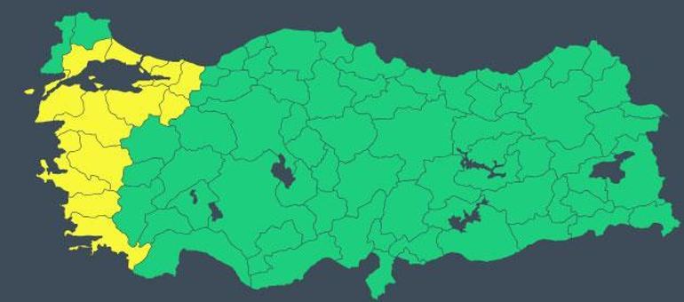 Meteoroloji “Aydın, Balıkesir, Bilecik, Bursa, Çanakkale, İstanbul, İzmir, Kocaeli, Manisa, Muğla, Sakarya, Tekirdağ, Yalova” için sarı kodlu uyarıda bulundu.