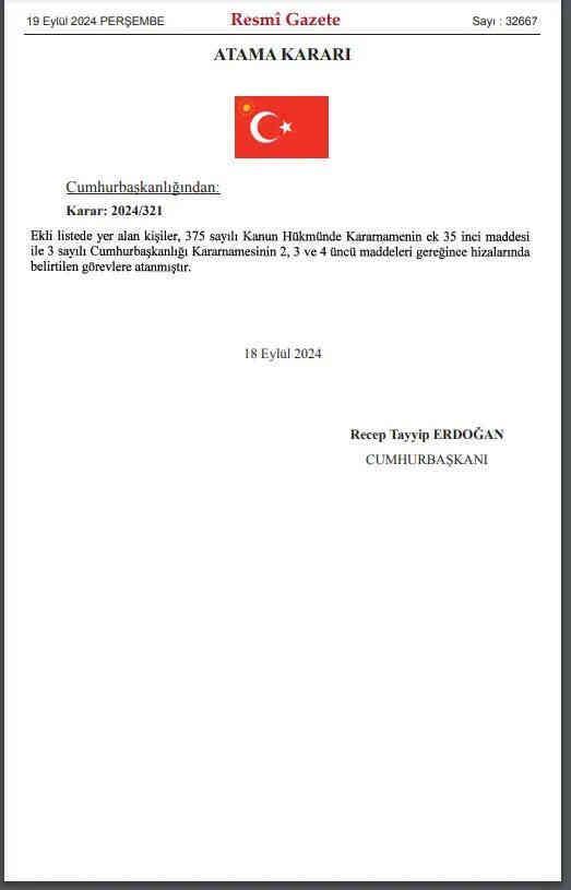 Atama kararları Resmi Gazete’de yayımlandı. Cumhurbaşkanı Recep Tayyip Erdoğan’ın imzasıyla yayımlanan kararlara göre; 16 ilin valisi değişti.