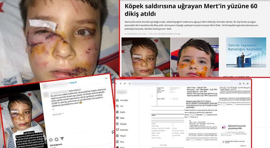 Sosyal medya platformunda bulunan bazı sözde yardımlaşma derneği hesapları, internet tarayıcılardan ya da eski haberlerden aldıkları çocuk fotoğraflarıyla paylaşım yaparak sahte bağış kampanyası yürütüyor. Daha önce meydana gelmiş olaylara yeni gerçekleşmiş izlenimi veren sahte hesaplar, güven oluşturmak amacıyla dekont görüntüleri de paylaşarak ulaştıkları binlerce kişiyi dolandırıyor. 2021 yılında Manisa’da köpek saldırısına uğrayan Mert Dilek’in haber fotoğrafını kullanan dolandırıcılar, ameliyat masrafı adı altında 22 bin liralık bağış kampanyası oluşturdu. Mert Dilek’in babası Vural Dilek, “Mert 3 sene önce böyle bir olay yaşadı, köpek saldırısına uğradı. Bizim, 2 hafta öncesine kadar bu dediğiniz olaydan haberimiz yoktu. Bizi tanıyan bir arkadaşımız aradı. ‘Çocuğunuzun resmi üzerinden bağış topluyorlar’ dedi. Instagram adresini bize gönderdi. Biz o adrese girip çocuğumuzun fotoğraflarını gördük. Ondan sonra hemen avukatımla görüştüm. Avukatım da hemen savcılığa suç duyurusunda bulundu. Şu an öyle bir durum yok. Bizim bir alakamız yok” şeklinde konuştu.