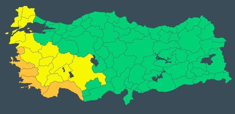 SARI KODLU UYARI: Afyonkarahisar, Balıkesir, Burdur, Çanakkale, Denizli, Edirne, Isparta, Kırklareli, Konya, Kütahya, Manisa, Tekirdağ ve Uşak