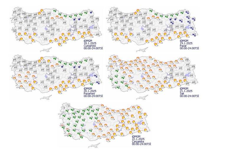 Meteoroloji Genel Müdürlüğü tarafından yapılan son tahminlere göre, yurdun kuzey kesimlerinin parçalı ve yer yer çok bulutlu, Orta Karadeniz kıyıları ile Doğu Karadeniz’in yağışlı, diğer yerlerin az bulutlu geçeceği tahmin ediliyor. Yağışların kıyı kesimlerde yağmur ve sağanak, Doğu Karadeniz’in iç kesimleri ile Ardahan çevrelerinde karla karışık yağmur ve kar şeklinde olması bekleniyor. Yurdun iç ve doğu kesimlerinde buzlanma ve don ile birlikte pus ve yer yer sis hadisesi görüleceği tahmin ediliyor. Doğu Karadeniz’in iç kesimlerinin yüksekleri ile Doğu Anadolu’nun yüksek ve dik yamaçlarında çığ tehlikesi bulunuyor.