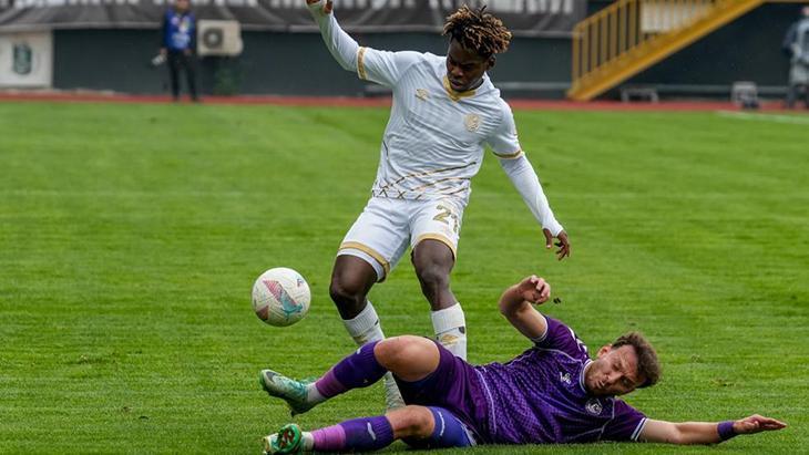 44. dakikada Traore’nin pasında ceza sahası içinde topla buluşan Diouf, Ensar ile ikili mücadelesinde düşüp kalktıktan sonra kaleci Alperen’i de yanıltarak topu boş kaleye gönderdi. 1-1
