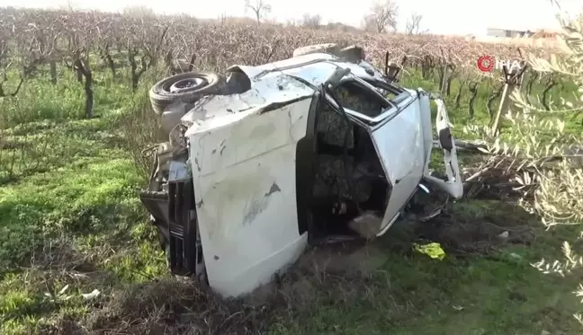 Manisa‘da tarlaya uçan otomobil hurdaya döndü