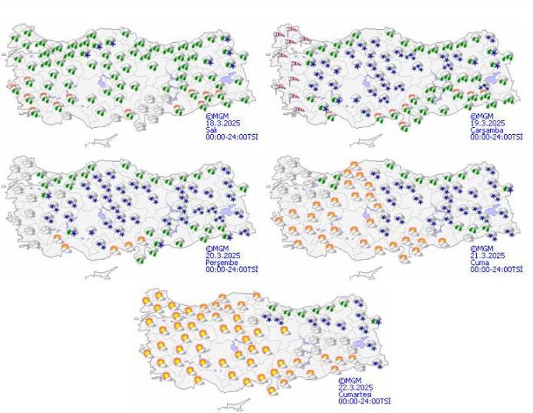 Meteoroloji Genel Müdürlüğü tarafından yapılan tahminlere göre: Ülkemiz genelinin parçalı ve çok bulutlu, Marmara, Ege (Muğla hariç), İç Anadolu, Karadeniz, Doğu ve Güneydoğu Anadolu, Kahramanmaraş çevreleri, Adana’nın kuzey kesimleri ile Antalya’nın doğusunun iç kesimlerinin yağışlı geçeceği tahmin ediliyor. Yağışların, genellikle yağmur ve sağanak, sabah saatlerinde Kırklareli’nin yüksek kesimlerinde, akşam saatlerinden itibaren İç Ege, İç Anadolu, Karadeniz’in iç kesimleri, Doğu Anadolu’nun kuzey ve doğusu ile Bilecik çevrelerinde karla karışık yağmur ve kar şeklinde olması bekleniyor. Yağışların, Karadeniz kıyıları (Sinop hariç), İstanbul, Bursa, Yalova, Kocaeli, Sakarya, Tokat, Gümüşhane, Bayburt, Erzincan ve Tunceli çevrelerinde yer yer kuvvetli olması bekleniyor. Sabah saatlerinde kuzeydoğu kesimlerde, gece saatlerinde iç ve doğu kesimlerde buzlanma ve don olayı olacağı tahmin ediliyor. Doğu Karadeniz’in iç kesimlerinin yüksekleri ile Doğu Anadolu’nun yüksek ve dik yamaçlarında çığ tehlikesi bulunmaktadır.
