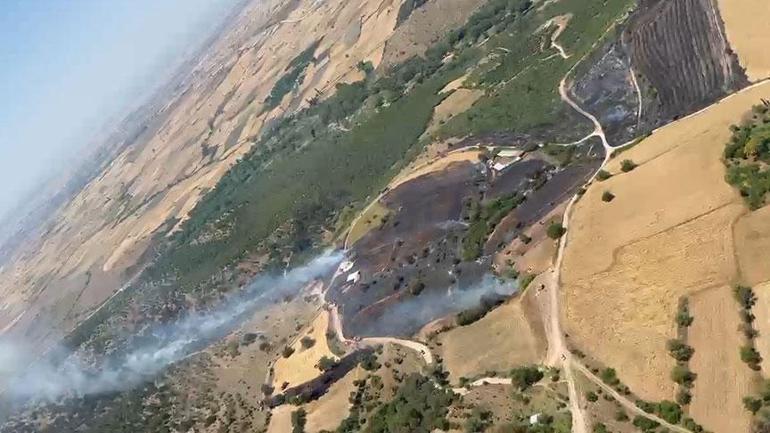 Çanakkale’nin Çan ilçesinde tarım arazisinde yangın çıktı. Ekipler, alevlere havadan ve karadan müdahale ediyor.
