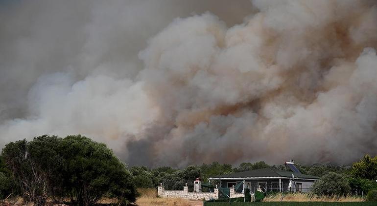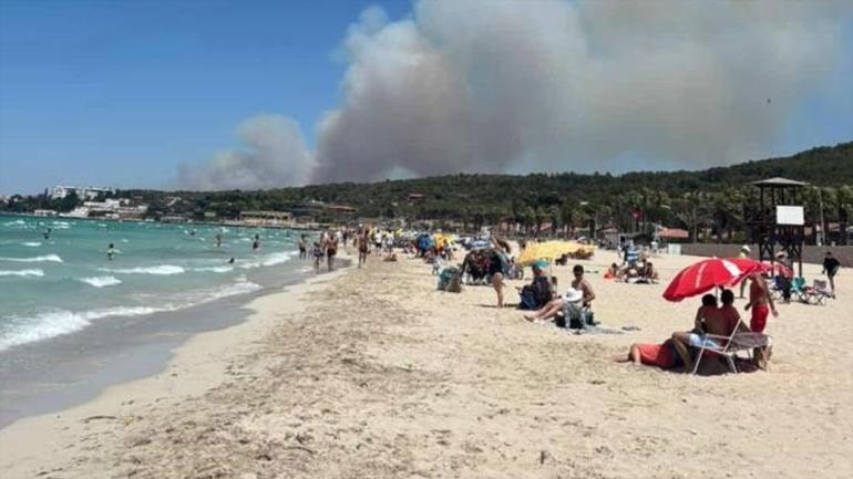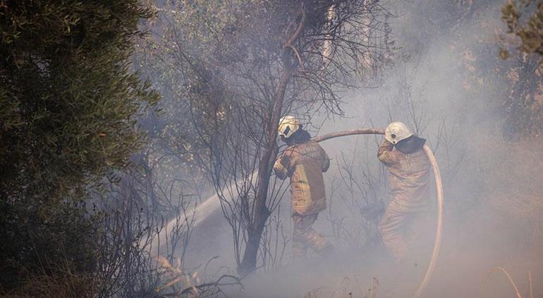 Zeytin ağaçlarının da bulunduğu bölgeden gökyüzüne yükselen dumanlar, kilometrelerce öteden görülebiliyor. Öte yandan, bölgedeki bazı yazlık evlerin tedbiren boşaltıldığı bildirildi.