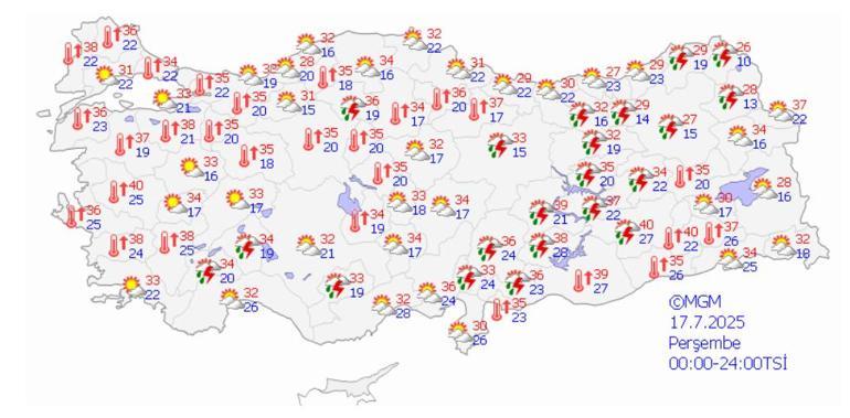 17 Temmuz 2025 Perşembe Yağış Durumu: