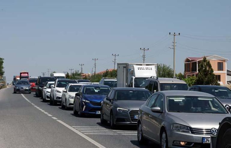 ine çıkışında oluşan uzun kuyruklar, Muğla girişindeki Yatağan ilçesinde de devam etti.