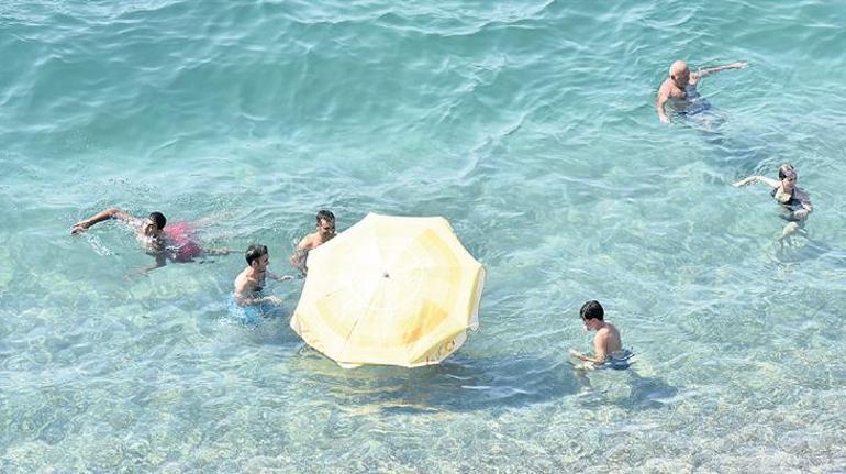 Antalya’da sıcaklık 34 derece, deniz suyu 31 derece ölçüldü; nem oranı yüzde 70’e çıktı. Tatilciler sahillere akın etti. Konyaaltı Sahili’nde bir vatandaşın denize plaj şemsiyesiyle girmesi objektiflere yansıdı. Cadde ve sokaklar ise neredeyse boştu. Bazı vatandaşlar, el tipi mini fanlarla dolaşarak sıcak havayla baş etmeye çalıştı.
