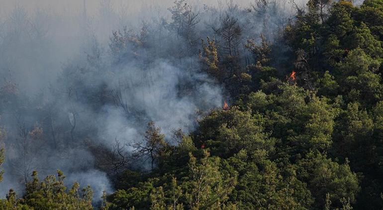 Rüzgarın etkisiyle büyüyen yangın nedeniyle bölgede yoğun duman oluştu. Ekiplerin yangını söndürme çalışmaları havadan ve karadan devam ediyor.