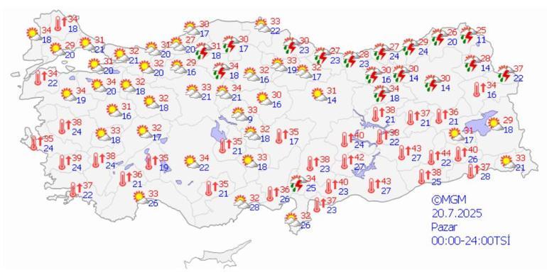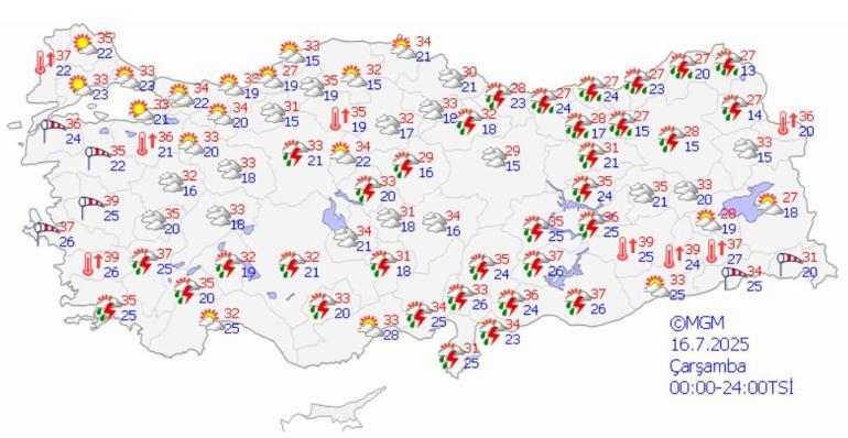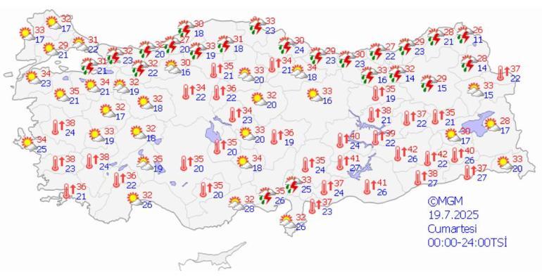 Meteoroloji Genel Müdürlüğü tarafından yapılan tahminlere göre: Ülkemiz genelinin parçalı bulutlu, İç Anadolu’nun batısı, Orta Karadeniz kıyıları, Doğu Karadeniz, Doğu Anadolu’nun kuzey ve doğusu, Göller yöresi, Doğu Akdeniz’in Toroslar mevkii ile Afyonkarahisar, Kütahya, Uşak, Osmaniye, Antalya’nın iç kesimleri, Hatay’ın kıyıları ile Gaziantep çevrelerinin sağanak ve gök gürültülü sağanak yağışlı geçeceği tahmin ediliyor. Yağışların Artvin’in kuzey kesimleri ile Rize çevrelerinde yerel kuvvetli olması bekleniyor. Rüzgarın Marmara, Kuzey Ege ve İç Anadolu’nun batı ve iç kesimlerinde kuzey yönlerden kuvvetli ve yer yer kısa süreli fırtına şeklinde (50-80 km/sa) esmesi bekleniyor.