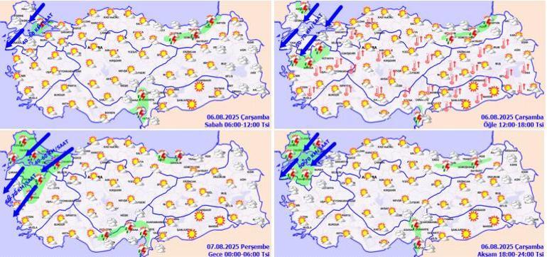 Yapılan tahminlere göre; yurdun kuzeydoğu ve iç kesimleri ile zamanla kuzeybatısının parçalı, yer yer çok bulutlu, İstanbul, Tekirdağ, Edirne, Kırklareli, Balıkesir, Çanakkale, Bursa, Sakarya, Kocaeli, Yalova, Manisa, Rize, Ordu, Giresun çevreleri, Hatay, Adana ve Artvin’in kıyı, Trabzon’un iç kesimleri, Kahramanmaraş ve Osmaniye’nin batısı ile Doğu Akdeniz’in Toroslar kesiminin yerel olmak üzere sağanak ve gök gürültülü sağanak yağışlı, diğer yerlerin az bulutlu ve açık geçeceği tahmin ediliyor.