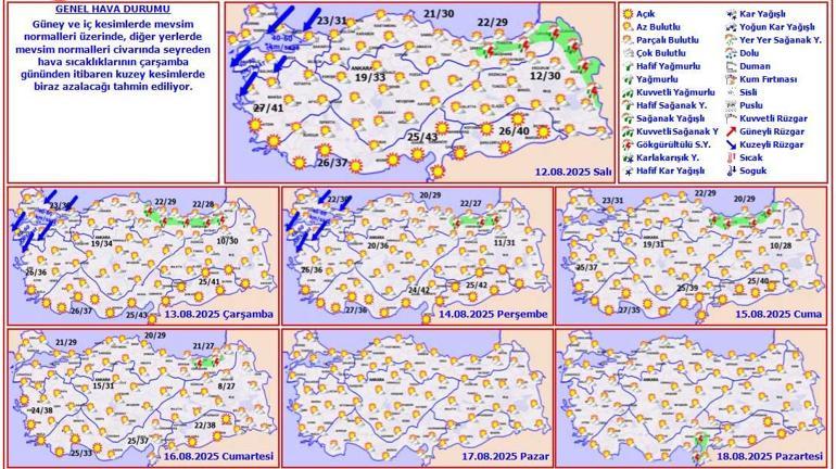 HAVA SICAKLIĞI: Önemli bir değişiklik beklenmiyor. Ege ve Akdeniz’de mevsim normallerinin üzerinde, diğer yerlerde mevsim normalleri civarında seyredeceği tahmin ediliyor.
