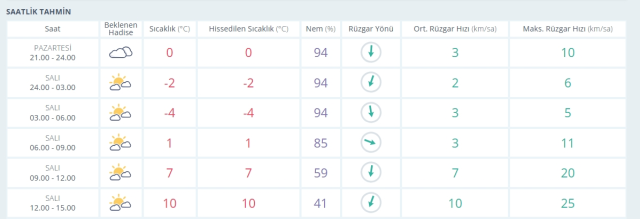 Halen mevsim normalleri civarında seyreden hava sıcaklıklarının, Pazartesi günü kuzeybatı kesimlerden başlamak üzere zamanla yurdumuz genelinde azalarak batı kesimlerde mevsim normallerinin 4 ila 6 derece, diğer bölgelerde ise 8 ila 10 derece altına ineceği tahmin edilmektedir. Soğuk havanın, Ülkemizin batı kesimlerinde hafta sonuna kadar, doğu kesimlerinde ise önümüzdeki hafta başına kadar etkili olması beklenmektedir.