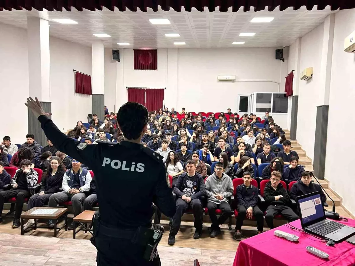 Semineri büyük ilgiyle takip eden Salihlili liseli gençler, polis memurlarına meslek hakkında merak ettiklerini sorma fırsatı da buldu. – MANİSA
