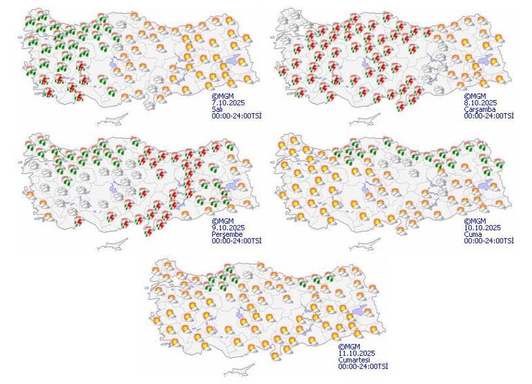Meteoroloji Genel Müdürlüğü tarafından yapılan tahminlere göre: Ülkemizin kuzey, iç ve batı kesimlerinin parçalı ve çok bulutlu, Marmara, Ege, Batı Akdeniz ile Ankara’nın batısı, Eskişehir. Bolu ve Düzce çevrelerinin sağanak ve gök gürültülü sağanak yağışlı, diğer yerlerin az bulutlu ve açık geçeceği tahmin ediliyor. Yağışların; Marmara, Ege ve Batı Akdeniz ile Ankara’nın batı ilçeleri ve Eskişehir çevrelerinde kuvvetli, Güney ve Kuzey Ege kıyılarında çok kuvvetli ve yerel şiddetli olması bekleniyor. Rüzgarın; İç Anadolu’nun güney ve doğusu, Doğu Karadeniz’in iç kesimleri ile Doğu Anadolu’nun kuzeyinde güneyli yönlerden kuvvetli olarak (40-60 km/saat) esmesi bekleniyor.