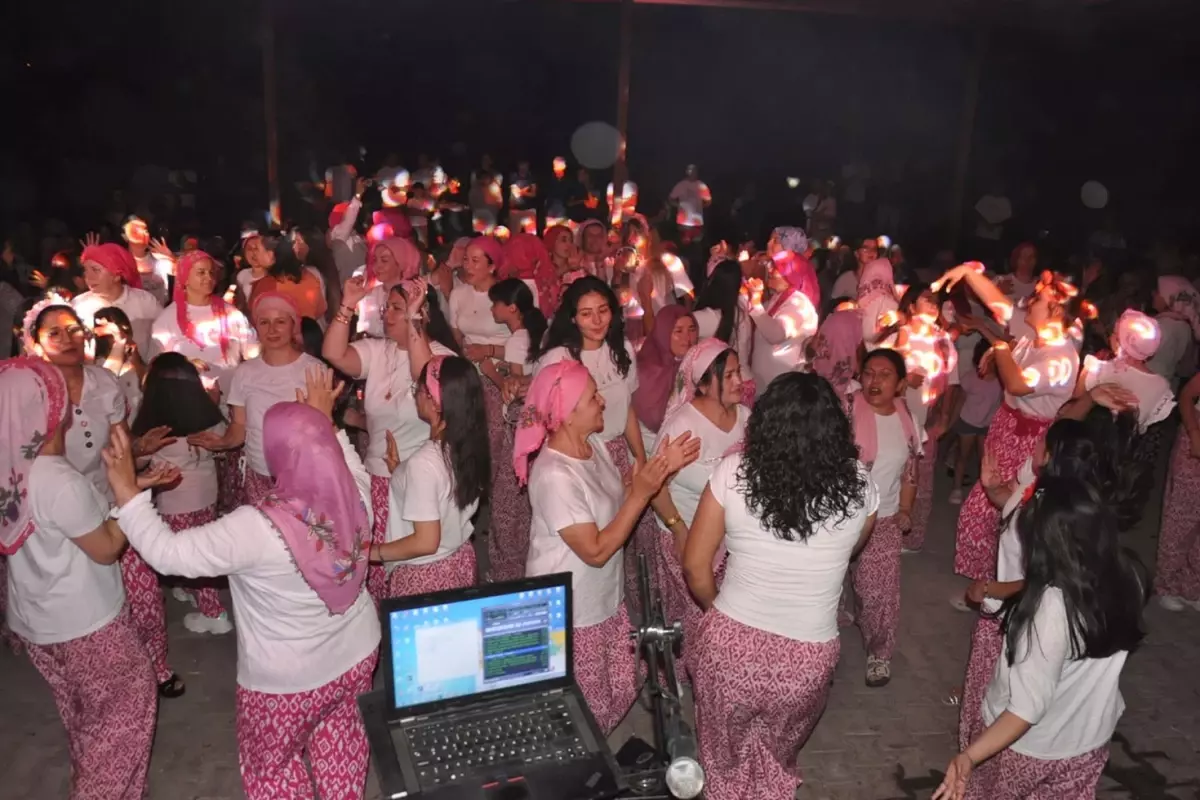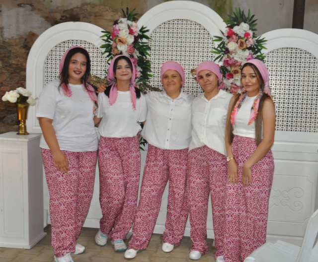 Kemer Mahallesi etkinlik alanında düzenlenen eğlenceye katılan kadınların hepsi bir örnek giyindi.