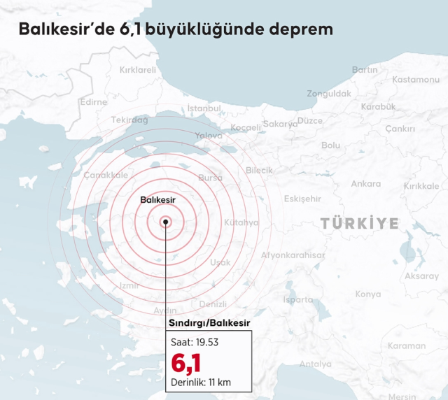 Deprem, Balıkesir merkezin yanı sıra İzmir, Kütahya, Yalova, İstanbul, Manisa, Uşak, Aydın, Eskişehir, Sakarya Yalova ve Tekirdağ’da da hissedildi.