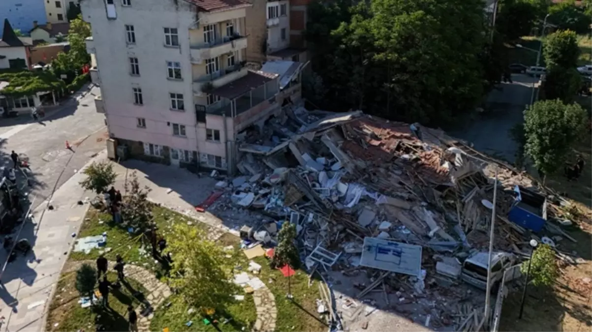 Sındırgı ilçesindeki bir binanın yıkıldığı görüldü.