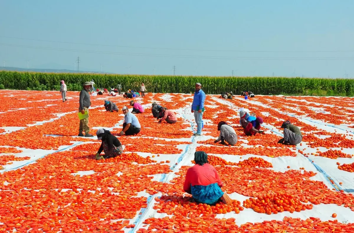 MANİSA’da hasat edilen domatesler, kurutulmak için tarlalara serilirken, Gediz Ovası kırmızıya büründü. Kurutulan domatesler ABD, Avustralya ve Avrupa ülkeleri dahil toplam 34 ülkeye ihraç ediliyor.